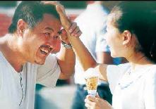 7月26日,《幸福時(shí)光》在大連旅順開機(jī),董潔有幸成為“幸福女孩”。 劇中的盲女孩個(gè)性很孤立,但經(jīng)歷了一些事情后,逐漸從防備別人到接受身邊的人,顯露出小女孩可愛的一面,對(duì)生活又充滿了希望。董潔覺得她和劇中的角色挺接近的,都是普普通通的女孩子,“最大的不同就是她是盲人! 兩個(gè)月的拍攝過程中最讓董潔難忘的是第一場(chǎng)戲!澳菆(chǎng)戲是哭戲,當(dāng)時(shí)劇組剛開機(jī)四天。一開始我的壓力并不大,心里想拍攝時(shí)只要想些悲傷的事就能哭出來,因?yàn)槠綍r(shí)我看電視就很容易感動(dòng)。但是真正拍攝的時(shí)候,現(xiàn)場(chǎng)突然一下子靜悄悄的。我剛要哭出來,眼圈都紅了,這時(shí)我一下子聽到膠片轉(zhuǎn)動(dòng)的聲音,注意力馬上分散了,怎么也哭不出來。最后這場(chǎng)戲反反復(fù)復(fù)拍了好多次,導(dǎo)演才通過! 開始的不順利并未影響到董潔的狀態(tài)!耙?yàn)閯〗M的人對(duì)我太好了,他們都把我當(dāng)成小妹妹看待。經(jīng)常對(duì)我說你第一次演戲,才拍了這么幾天,能演成這樣就已經(jīng)很不錯(cuò)了。張導(dǎo)演也時(shí)常鼓勵(lì)我,告訴我不要著急。我從來沒看見導(dǎo)演在現(xiàn)場(chǎng)發(fā)火,當(dāng)我進(jìn)入不了狀態(tài)時(shí),他會(huì)耐心地啟發(fā)我。他不會(huì)讓我事先背臺(tái)詞、設(shè)計(jì)小品,都是到了拍攝現(xiàn)場(chǎng)再給我講劇情,盡量讓我輕松、自然地表演!倍瓭嵳f導(dǎo)演從來沒當(dāng)面夸過她,更沒說過她的表演已經(jīng)超過了誰。不過有一點(diǎn)是肯定的,就是每場(chǎng)戲只有導(dǎo)演滿意了,才能通過。 在董潔眼里,張藝謀是個(gè)精力充沛的人,“他那時(shí)需要處理的事兒很多,除了拍戲,他還要籌備‘申奧片’和執(zhí)導(dǎo)舞劇的事。我覺得他做事井井有條的,不會(huì)忙了這個(gè)忘了那個(gè)! 劇中董潔和趙本山的對(duì)手戲很多,她說趙老師是個(gè)特別和善的人,在表演上給了她很多幫助。“每一場(chǎng)戲開拍前,趙老師總是主動(dòng)先跟我搭一遍。說臺(tái)詞時(shí)他會(huì)告訴我盡量用生活中的語氣,然后一字一句地示范。拍戲這段日子我感覺趙老師是個(gè)特別受歡迎的人,我們到居民樓拍戲時(shí),許多人都等著看他,他不管做什么,大家都笑!