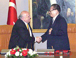 江澤民與土耳其總統(tǒng)德米雷爾共同簽署聯(lián)合公報(bào) 2000年4月20日 10:35 ![]() 中國國家主席江澤民與土耳其總統(tǒng)德米雷爾4月19日在安卡拉會(huì)談后簽署了聯(lián)合公報(bào)。中新社記者 彭偉祥 攝 相關(guān)專題:江澤民訪六國 |