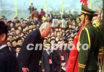圖文:海內(nèi)外華夏子孫公祭黃帝陵 2001年4月6日 08:01 ![]() 陜西黃帝陵大祭祖。中新社記者 宋吉河 攝 ![]() 王光英向軒轅黃帝畫像敬獻(xiàn)花籃。中新社記者 宋吉河 攝 ![]() 萬國權(quán)向軒轅黃帝畫像敬獻(xiàn)花籃。中新社記者 宋吉河 攝 中新社西安四月五日電(王彥平)清明節(jié)的黃帝陵,雨后初霽,陽光普照,農(nóng)歷辛巳年公祭軒轅黃帝典禮今天在此隆重舉行。 今天在象征九五之尊的九點(diǎn)五十分,公祭典禮正式開始。全場肅立后,代表三十四個(gè)省、市、自治區(qū)和特別行政區(qū)的三十四響禮炮響起,人們的目光投向空中,仿佛在聆聽中國十二億九千五百萬華夏子孫和眾多海外同胞向中華人文初祖所要表達(dá)的殷殷懷念與追思。 海內(nèi)外各界參祭代表,在入口廣場肅立靜候片刻后,隨古樸、莊嚴(yán)的祭祀儀俯隊(duì),過軒轅橋觀龍尾道,來到軒轅廟前。 隨后鼓樂齊鳴,在威武的禮儀士兵引領(lǐng)下,全國人大常委會副委員長王光英、全國政協(xié)副主席萬國權(quán)等分別向黃帝像敬獻(xiàn)花籃。 在身著盛裝的禮儀小姐們向始祖敬獻(xiàn)了鮮花、時(shí)果等祭品后,陜西省省長程安東恭讀了辛巳年清明公祭軒轅黃帝祭文。 最后,所有參祭的各界代表向黃帝像行三鞠躬大禮。(完) |