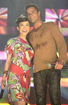 圖文:瑞奇·馬丁演唱會(huì) 李玟現(xiàn)身掀高潮 2001年4月25日 17:12 ![]() 李玫以東瀛武士造型亮相,與瑞奇·馬丁合唱。 中新網(wǎng)新加坡4月25日消息:拉丁“搖臀天王”瑞奇·馬丁(Ricky Martin)昨晚第3度赴新加坡演唱,幾乎所有的觀眾在演出開始就一直跟瑞奇“伴舞”到結(jié)束。而嘉賓李玟現(xiàn)身與瑞奇·馬丁合唱,則為演唱會(huì)掀起高潮。 這場(chǎng)演出只有半小時(shí),從瑞奇·馬丁一出場(chǎng),熱情澎湃的觀眾就開始興奮尖叫。而當(dāng)每唱完一首歌,觀眾給予掌聲時(shí),瑞奇·馬丁都會(huì)雙手合十,表示感激。 曾經(jīng)于去年10月在瑞奇·馬丁世界巡回演唱會(huì)上擔(dān)任亞洲區(qū)3場(chǎng)特別嘉賓的李玟,這次又再受邀,于演唱會(huì)上與瑞奇·馬丁深情合唱《Nobody Wants To Be Lonely》。二人在演唱完畢后的禮貌互吻,使得全場(chǎng)的觀眾瘋狂尖叫。 會(huì)后,主辦單位贈(zèng)送寫上“飛”字的大型中國字畫給瑞奇·馬丁,而李玟則由于在現(xiàn)場(chǎng)找不到剪刀,無法打開禮物,于是開玩笑說,希望里面是個(gè)巨型的鉆石,引得在場(chǎng)觀眾開懷大笑。 |