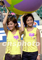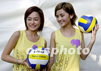 組圖:樂壇組合Twins為沙灘排球賽營造氣氛 2001年08月23日 08:50 ![]() 樂壇女子組合Twins兩位歌手蔡卓妍(左)、鍾思桐(右)22日出席世界女子沙灘排球香港公開賽為觀眾歌唱表演,并與現(xiàn)場觀眾玩巨型沙灘球,增添樂趣營造氣氛。中新社傳真 鄧慶樂 攝 ![]() 樂壇女子組合Twins兩位歌手蔡卓妍(右)、鍾思桐(左)22日出席世界女子沙灘排球香港公開賽,手持沙灘排球,表現(xiàn)健康活力形象。中新社傳真 鄧慶樂 攝