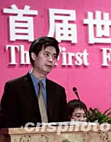 組圖:首屆世界華文傳媒論壇在南京開幕 2001年09月16日 14:42 ![]() 首屆世界華文傳媒論壇十六日在南京開幕,中國國務(wù)院僑務(wù)辦公室副主任兼中國新聞社社長劉澤彭主持會議。中新社記者 王瑤 攝 ![]() 首屆世界華文傳媒論壇十六日在南京開幕,中國新聞社總編輯郭招金在開幕式上作《全球化浪潮中的海外傳媒的定位與角色》的發(fā)言。中新社記者 王瑤 攝