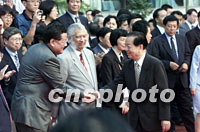 ![]() 國務院副總理錢其琛十六日親赴南京紫金山下的國際會議中心,看望出席首屆世界華文傳媒論壇的代表,并與大家合影留念。中新社記者 王瑤 攝 ![]() 國務院副總理錢其琛十六日親赴南京紫金山下的國際會議中心,看望出席首屆世界華文傳媒論壇的代表,并發(fā)表了熱情洋溢的講話。中新社記者 王瑤 攝