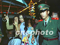 圖:韋唯在浙江湖州演出 2001年10月04日 17:34 ![]() 中國著名歌唱演員韋唯3日晚在浙江湖州演出后,由武警戰(zhàn)士護衛(wèi)從后臺走向休息室。中新社記者 趙振清 攝 |