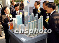 圖:香港地鐵物業(yè)夥同四大房地產(chǎn)商推介西九龍物業(yè) 2001年11月21日 19:41 ![]() 香港地鐵物業(yè)總監(jiān)何恒光(中),11月21日夥同恒隆集團(tuán)主席陳啟宗(左一)、新鴻基地產(chǎn)副主席郭炳江(左二)、九龍倉集團(tuán)主席李唯仁(左三)、永泰亞洲富聯(lián)國際行政總裁鄭維新等共同推介正在建設(shè)的西九龍面積達(dá)1,200萬平方尺的超大綜合發(fā)展項(xiàng)目。中新社記者 任晨鳴 攝 |