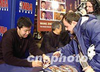 圖:中國球員王治郅為美國球迷簽字 2002年01月04日 17:23 ![]() 美國東部時間三日中午,美國職業(yè)籃球協(xié)會中唯一的中國球員王治郅出席了紐約市中心NBA專賣店里舉行的他個人肖像郵票首次公開展示會。這套郵票由利比里亞政府發(fā)行,可在全球通用。會后,他為慕名前來的美國球迷簽字。中新社記者 陳建 攝 |