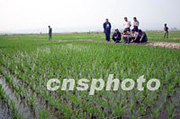 圖文:中國專家首次實施金三角毒品替代種植 2002年02月23日 17:50 ![]() 云南省西雙版納傣族自治州種子公司的專家,在金三角大其力西北面一百二十多公里處的緬甸萬宏地區(qū),幫助當(dāng)?shù)貙嵤┒酒诽娲N植的工作已經(jīng)啟動,并已展現(xiàn)出廣闊的前景:首批種植的五百畝早稻秧苗已是一片嫩綠。圖為專家組在田邊視察。作者:納家驊