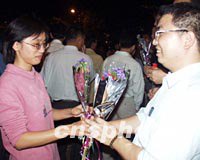 圖:海南元宵換花節(jié) 青年當(dāng)街互換花 2002年02月27日 10:48 ![]() 元宵佳節(jié),海南省瓊山市舉辦民間元宵換花節(jié),近十萬市民參與了當(dāng)晚的賞燈換花活動(dòng)。圖為一對(duì)男女青年當(dāng)街相互換花,有情人以此連理。中新社圖 王辛莉 攝