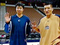 圖:王治郅和巴特爾在美國(guó)NBA賽場(chǎng)上對(duì)決 2002年03月04日 13:38 ![]() 加盟美國(guó)達(dá)拉斯小牛隊(duì)的中國(guó)籃球運(yùn)動(dòng)員王治郅,與加入美國(guó)西部掘金隊(duì)的中國(guó)籃壇名將巴特爾,四日在美國(guó)丹佛TOM體育館的NBA賽場(chǎng)上對(duì)決,兩人在進(jìn)入場(chǎng)地時(shí)表示戰(zhàn)勝對(duì)方和友誼。