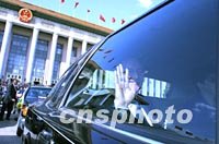圖:美國(guó)使節(jié)驅(qū)車旁聽人大開幕會(huì) 2002年03月06日 17:06 ![]() 美國(guó)使節(jié)在北京人民大會(huì)堂旁聽九屆全國(guó)人大第五次會(huì)議后,驅(qū)車駛離天安門廣場(chǎng)。中新社記者 劉殊瑾 攝