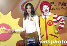 圖:陳慧琳在太陽道具貼上《麥當(dāng)奴飽滿愛》標(biāo)志 2002年03月20日 19:54 ![]() 歌星陳慧琳20日在香港出席《麥當(dāng)奴·飽滿愛心暖萬家》慈善活動(dòng)揭幕儀式,麥當(dāng)奴叔叔陪同陳慧琳在太陽道具貼上《麥當(dāng)奴飽滿愛》標(biāo)志。中新社傳真 鄧慶樂 攝