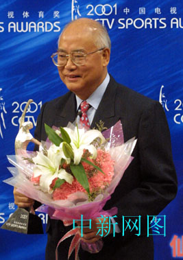 ![]() 國家乒乓球隊總教練蔡振華還擊敗了羽毛球隊總教練李永波獲得最佳教練員獎 中新社記者 李剛攝 ![]() 2001年度中國電視體育獎二十二日晚在北京隆重揭曉,為中國體育事業(yè)發(fā)展立下汗馬功勞的何振梁先生獲得終身成就獎。中新社記者 李剛攝