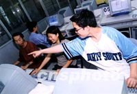 圖:臺灣學(xué)生向家人傳達在大陸的生活訊息 2002年04月23日 10:56 ![]() 在泉州華僑大學(xué)有眾多來自臺灣的大學(xué)生,課余時間他們用電腦向家人傳達在大陸生活訊息。圖為韓開鈞(右)與印尼女同學(xué)一起交流電腦信息。中新社圖 陳勇 攝