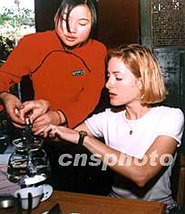 圖:美國姑娘向中國茶藝小姐學(xué)習(xí)茶道 2002年04月23日 14:24 ![]() 出生于法國的美國姑娘可麗,具有法國和美國的文化背景,近期執(zhí)教于泉州的她,卻對中國茶文化異常著迷,一有空閑,可麗便向中國茶藝小姐學(xué)習(xí)中國茶道技藝。中新社圖 陳勇 攝