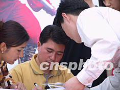 圖:“高空王子”阿迪力書(shū)市簽名義賣(mài) 2002年05月12日 18:38 ![]() 十二日,剛剛在高空創(chuàng)下新吉尼斯紀(jì)錄的“高空王子”阿迪力來(lái)到北京春季書(shū)市,為記錄他挑戰(zhàn)世界記錄的《驚心22天》一書(shū)首發(fā)簽名義賣(mài)。義賣(mài)收入和“阿迪力基金”中的一萬(wàn)元將捐給因患癌癥急需社會(huì)救助的21歲北京姑娘趙晶。中新社記者 章永哲 攝