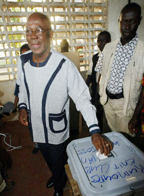 圖:5月14日塞拉利昂舉行總統(tǒng)選舉 2002年05月14日 21:10 5月14日,塞拉利昂舉行了內(nèi)戰(zhàn)結(jié)束后的首次總統(tǒng)選舉,此次共有9個候選人參加總統(tǒng)競選,參加投票的選民預計將達到230萬。中新網(wǎng)圖