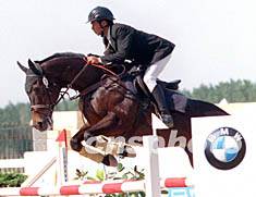 ![]() 2002年“寶馬杯”全國馬術(shù)障礙精英賽總決賽26日在北京格林馬會舉行,來自北京、上海、內(nèi)蒙古、新疆、廣東等40名運動員和50匹優(yōu)秀運動馬參加了比賽。廣東李振強、上海張濱、內(nèi)蒙古孟克獲得個人前三名。趙振清 攝