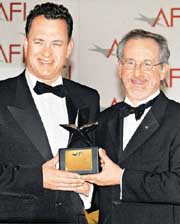 獲頒終身成就獎(jiǎng) 湯姆漢克斯現(xiàn)場感言"太幸運(yùn)"(圖) 2002年06月14日 10:19 ![]() 中新網(wǎng)香港6月14日消息:兩度勇奪奧斯卡影帝的湯姆漢克斯,當(dāng)?shù)貢r(shí)間12日晚獲美國電影學(xué)院頒發(fā)終身成就獎(jiǎng),創(chuàng)下歷年來獲此殊榮最年輕得主的紀(jì)錄。丹澤爾-華盛頓、梅格-萊恩等明星好友都出席盛會(huì)。大導(dǎo)演史蒂芬-斯皮爾伯格親自為他頒獎(jiǎng)。 今年7月將屆滿46歲的湯姆漢克斯,是本屆美國電影學(xué)院三十周年的終身成就獎(jiǎng)得主。湯姆漢克斯在領(lǐng)獎(jiǎng)時(shí)表示,他要感謝家人、觀眾這么多年來給他的支持與鼓勵(lì);對于自己能夠從事演電影這一行,湯姆漢克斯的感想是“很幸運(yùn)”。 據(jù)外電報(bào)道,頒獎(jiǎng)典禮12日晚間在洛杉磯柯達(dá)劇院舉行,在好萊塢擁有極佳人緣的湯姆-漢克斯,眾多明星好友都前來觀禮,“星光閃閃”的臺(tái)下貴賓與臺(tái)上的頒獎(jiǎng)典禮同樣看頭十足。 美國電影學(xué)院主席史春納日前曾表示,湯姆-漢克斯是“新一代美國電影的表率”,因此選定在美國電影學(xué)院三十周年時(shí)頒發(fā)終身成就獎(jiǎng)給他。 湯姆漢克斯主演多部電影都是票房保證,包括《西雅圖不眠夜》、《電子情書》、《搶救大兵瑞恩》等。 相關(guān)報(bào)道:飲水不忘思源 奧斯卡影帝湯姆·漢克斯捐資母校 相關(guān)報(bào)道:湯姆漢克斯將獲美國電影學(xué)院頒發(fā)終身成就獎(jiǎng) 相關(guān)報(bào)道:影帝湯姆漢克斯將加盟斯皮爾伯格新片演出 相關(guān)報(bào)道:周潤發(fā)有機(jī)會(huì)與湯姆·漢克斯合作演繹華人 相關(guān)報(bào)道:湯姆·漢克斯與斯皮爾伯格合作最昂貴的電視劇