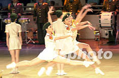 ![]() 中國(guó)人民解放軍軍樂(lè)團(tuán)八日晚在澳門(mén)綜藝館舉行精彩演出,圖為演出的“女兵舞”給觀眾留下了深刻的印象。李剛 攝