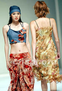 圖:香港時(shí)裝節(jié) 模特展示春夏新裝作品 2002年07月10日 09:42 ![]() 來自韓國的時(shí)裝設(shè)計(jì)師李炳周,7月9日在香港舉辦的“亞太時(shí)裝設(shè)計(jì)師表演”專場(chǎng)上展示韓國風(fēng)情系列。洪少葵 攝