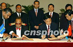 與臺灣“斷交” 瑙魯與中國建立大使級外交關系 2002年07月21日 14:10 ![]() 中華人民共和國外交部部長助理周文重與瑙魯共和國總統(tǒng)勒內(nèi)·哈里斯在香港分別代表各自政府在中、瑙兩國建立外交關系的聯(lián)合公報上簽字。潘索菲 攝