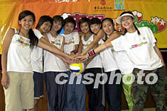 圖:歌星何韻詩等出席《中銀愛心活力Team》活動 2002年07月23日 19:41 ![]() 歌星何韻詩23日在香港出席由中國銀行與商業(yè)電臺攜手舉辦之《中銀愛心活力Team》活動,她與學界精英導師一起為保良局兒童和青少年傳授排球技藝。鄧慶樂 攝