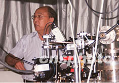 圖:中國科學家完成“玻色—愛因斯坦凝聚”實驗 2002年07月24日 10:41 ![]() 繼美、德等國科學家之后,中國科學家今年也成功實現(xiàn)了愛因斯坦七十年前預言的新物態(tài)——“玻色—愛因斯坦凝聚”實驗。圖為領導這一項目的中國科學院院士王育竹日前在上海實驗室介紹該項實驗。中新社記者 孫自法 攝