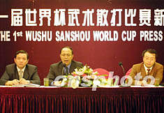 圖:首屆世界杯武術(shù)散打賽將于25日在上海開幕 2002年07月24日 18:53 ![]() 首屆世界杯武術(shù)散打賽將于二十五日在上海拉開戰(zhàn)幕。本次比賽吸引了來自中國、美國、巴西、韓國等十五個(gè)國家和地區(qū)的四十四名“武林高手”前來參賽。圖為國際武術(shù)聯(lián)合會(huì)秘書長(zhǎng)嚴(yán)建昌(中)二十四日在新聞發(fā)布會(huì)上介紹比賽情況。作者:湯彥俊