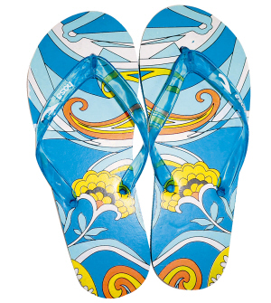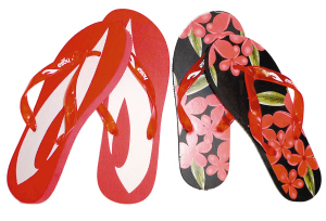 據(jù)介紹,沙灘鞋輕巧、柔軟、減震性良好,并且防霉、防臭、透氣、防水、吸濕、速干,適合海邊漫步,也適合日常穿著。記者還了解到,今年沙灘鞋鞋底用料主要有兩大系列:PVC和EVA。PVC膠耐磨、防霉、防臭,但比較笨重、透氣性不強;而EVA膠輕巧,透氣、防水性能好,但不耐磨。有部分品牌今年推出雙層膠底鞋,與地面接觸的底用耐磨的PVC膠,與腳底接觸的用輕巧、透氣性好的EVA膠。