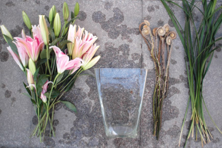 1在瓶中先插入百合。
