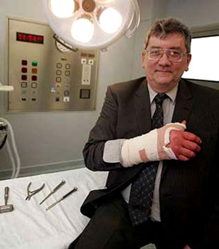 手術(shù)過程包括在他的右腕切出一條四英寸長的口子,在口子里鑿出一片合桃般大的骨和移動一條肌腱,不過其間他一點痛楚也感覺不到。手術(shù)后右手雖然腫脹,且裹上了繃帶,但倫凱伊說自己的感覺好極了。