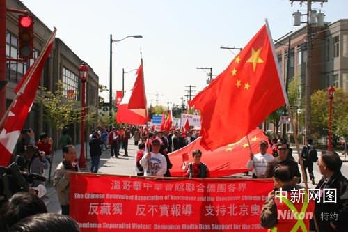 本次活動(dòng)由溫哥華中華會(huì)館于上周發(fā)起,得到當(dāng)?shù)匦吕蟽S團(tuán)的廣泛響應(yīng)。本預(yù)計(jì)將有千人參加,但今天現(xiàn)場人潮涌動(dòng),當(dāng)?shù)厝A人扶老攜幼,高舉抗議條幅,揮舞中加兩國國旗。華文報(bào)章《加中時(shí)報(bào)》推出印有北京奧運(yùn)火炬圖片大連版,供參加集會(huì)者卷成紙筒奧運(yùn)火炬,“護(hù)奧運(yùn)”氣氛格外熱烈。