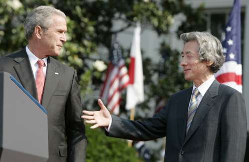 在結(jié)束了白宮總統(tǒng)辦公室的會(huì)談之后,布什和小泉舉行了聯(lián)合新聞發(fā)布會(huì)。布什說(shuō)道:“看,他喜歡埃爾維斯(貓王)!”白宮發(fā)言人托尼-斯諾表示,布什送給小泉的是一個(gè)很大的、老式的、頂部是正方形的自動(dòng)點(diǎn)唱機(jī),里面存有100首左右“50年代的搖滾樂(lè)”,并且只要按一個(gè)按鈕就能看到正在播放的唱片。