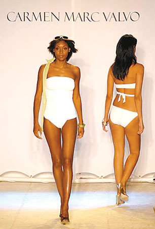 中新網(wǎng)4月13日電 據(jù)廣州日?qǐng)?bào)報(bào)道,早在上個(gè)季末各大時(shí)裝周發(fā)布2006年春夏時(shí)裝上,Gucci、JeanPaulGaultier等國(guó)際大品牌和設(shè)計(jì)師便已經(jīng)將精心設(shè)計(jì)的泳裝新款呈現(xiàn)于觀眾面前。隨著夏天的臨近,從近期巴塞羅那、里約熱內(nèi)盧的泳裝秀上看到,今年春夏的泳裝新品更加年輕化,其中,年輕美眉熱愛(ài)的清純、度假、叢林以及鄉(xiāng)村這四大風(fēng)格的泳裝備受關(guān)注。