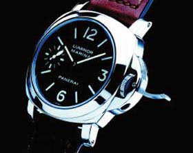 以意大利皇家海軍手表官方供應商而聞名的Panerai其最大的特色是尺寸。最小的表款尺寸也有40mm。有許多高大的精英男性就是喜歡它的大尺寸,不過許多中等身材的男士們或者是女性同樣對它充滿著狂熱。Panerai的出現(xiàn)甚至顛覆了鐘表界的定律:不是自廠機芯,不是傳統(tǒng)的瑞士品牌。甚至它佩戴起來的沉重感在一般人看來可能不是那么舒服。但是這一切都抵擋不了表迷對它的熱愛。拋光精鋼表殼及藍寶石水晶表底蓋。黑色表盤附夜光小時標示與阿拉伯數(shù)字,小秒針位于9時位置。藍寶石水晶玻璃,厚度3.5mm,抗反光處理,防水可達300米,刻有PANERAI標志,皮革表帶及表扣。
