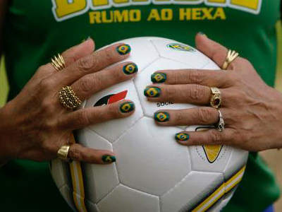 在這個(gè)正值世界杯的夏天,看一眼蒼白的指甲,僅僅用單色甲油紅潤(rùn)氣色已不足以體現(xiàn)情趣和時(shí)尚,06初夏指甲流行情報(bào)是:把球隊(duì)隊(duì)旗畫(huà)在指甲上。不少美甲小店紛紛一副標(biāo)價(jià)45元的水晶指甲也打出了世界杯的旗號(hào),仔細(xì)一看才發(fā)現(xiàn),這水晶指甲的甲面上竟是英格蘭、巴西、法國(guó)和意大利球隊(duì)的隊(duì)旗。店主表示,這是為世界杯特意趕制的,隨著世界杯球賽的推進(jìn),店內(nèi)的甲面將逐漸增加的到32種,以滿足球迷MM們的需要。