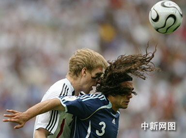德國(guó)與阿根廷兩大足球豪門(mén)在世界杯歷史上兩次決賽相遇,各勝一場(chǎng),第三度的交手今天在二00六年德國(guó)世界杯第一場(chǎng)四分之一決賽中上演。這場(chǎng)世紀(jì)大戰(zhàn),開(kāi)場(chǎng)并沒(méi)有上演精彩的攻勢(shì)足球,雙方打得非常拘謹(jǐn),唯一一次亮點(diǎn)就是德國(guó)隊(duì)的施奈德助攻,巴拉克后排插上頭球攻門(mén),可惜力量稍大偏出門(mén)柱。