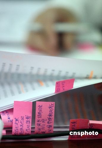 3月5日,出席十一屆全國(guó)人大一次會(huì)議的澳門代表團(tuán)舉行全體會(huì)議,審議政府工作報(bào)告。一位代表審議報(bào)告一絲不茍,將自己的看法寫在小紙條上,粘貼在報(bào)告文件有關(guān)段落旁,以供審議發(fā)言時(shí)引用。中新社發(fā) 張宇 攝