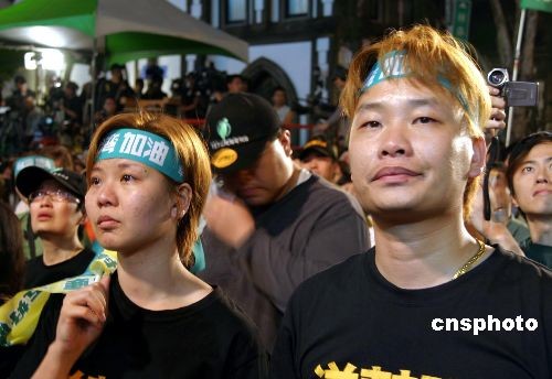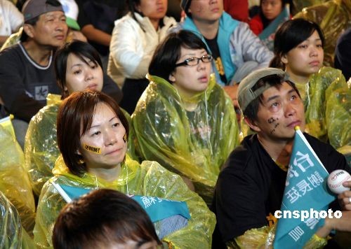 臺灣地區(qū)領(lǐng)導(dǎo)人選舉結(jié)果三月二十二日晚揭曉,民進黨支持者對選舉結(jié)果非常失望。中新社發(fā) 曾嘉 攝