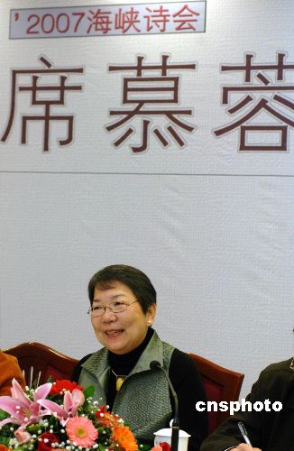 十二月二十二日,由福建省文學(xué)藝術(shù)界聯(lián)合會(huì)、《臺(tái)港文學(xué)選刊》雜志社、福建省文學(xué)藝術(shù)對(duì)外交流中心主辦的2007海峽詩(shī)會(huì)“天和地諧,人和詩(shī)諧——席慕蓉海峽西岸行”在福州拉開(kāi)序幕,并于當(dāng)天在福建會(huì)堂舉行了席慕蓉作品研討會(huì)。圖為席慕蓉參加研討會(huì)。中新社發(fā) 王東明 攝