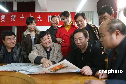 10月23日,河南省開封市文化藝術(shù)學校的黨員干部正聚在一起學習貫徹“十七大”會議精神。中國共產(chǎn)黨第十七次全國代表大會剛剛閉幕,河南省開封市各界黨員干部和群眾迅速掀起學習貫徹十七大精神的熱潮,大家紛紛表示要以十七大精神為動力推動當前工作,堅持開拓進取、不斷創(chuàng)新,譜寫人民美好生活新篇章。中新社發(fā) 凱楓 攝