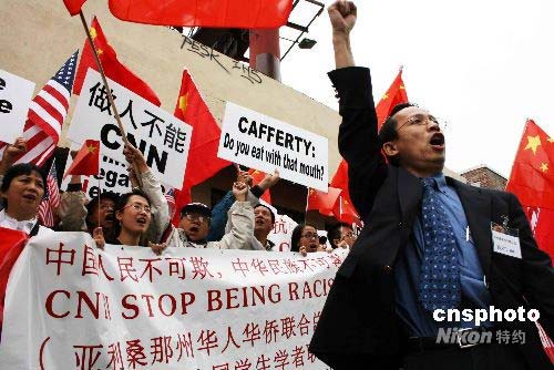 當(dāng)?shù)貢r間4月19日,全美華人華僑6000多人在洛杉磯CNN辦公大樓前舉行抗議示威活動,強烈遣責(zé)CNN主持人卡佛蒂惡劣言論,要求其向全體中國人民道歉。中新社發(fā) 金立冬 攝