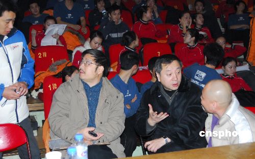 2008年中國農(nóng)歷春節(jié)將近,中央電視臺各類春節(jié)檔期的晚會節(jié)目進入了緊張的節(jié)目審查和彩排階段。文藝中心主任朱彤(前排右二)和春晚總導(dǎo)演陳臨春(前排左二)在彩排現(xiàn)場悉心指導(dǎo)工作。中新社發(fā) 楊影懿 攝