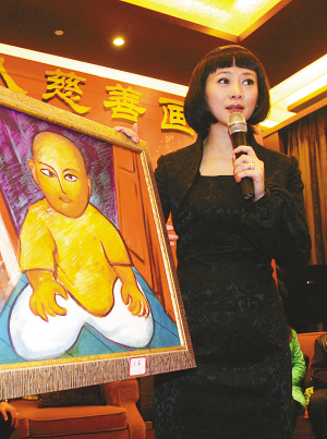 為了讓作品賣出好價錢,母親是重慶人的翁虹還熟練地用起了重慶話調(diào)動現(xiàn)場氣氛,當一位女士成功拍下一幅作品時,翁虹開心地表示:“巴適,重慶的女人就是巴適!睋(jù)了解,劉峰的8件作品在翁虹的大力鼓吹下共拍出了5.5萬元,而這筆錢也將全部捐贈給患有尿毒癥的那位女性。