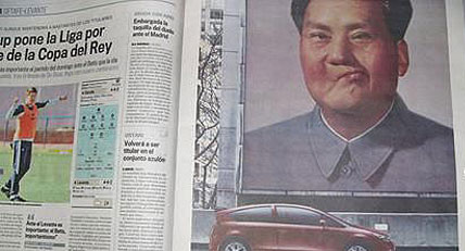 1月8日,西班牙大報之一《國家報》在第15版上刊登一個整版的法國雪鐵龍汽車廣告。廣告畫面是中國已故領袖毛澤東的照片,而且毛澤東的形象被廣告設計者進行了肆意篡改,被電腦技術改得神態(tài)奇怪。