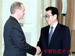 中國全國政協(xié)主席李瑞環(huán),7月18日在北京會見俄羅斯總統(tǒng)普京。中新社記者 滿會喬 攝
