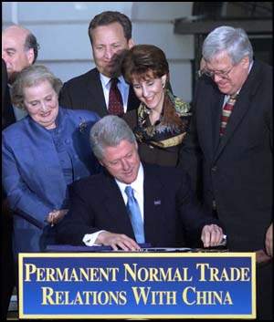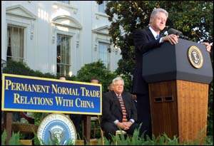 圖文:克林頓簽署PNTR法案 2000年10月11日 11:35 克林頓在多名曾為PNTR法案不斷努力的官員陪同下,正式簽署PNTR法案,為中美關系邁入一個歷史性的新里程。 克林頓在總統(tǒng)任期內完成心愿,簽署PNTR法案,他形容這是他在任期內的一大勝利。(圖據外電) 中新社華盛頓十月十日電(記者徐德金)美國總統(tǒng)克林頓今天下午在白宮南草坪舉行儀式,簽署了對華永久性正常貿易關系(PNTR)法案。由此,這項已在國會眾議院、參議院通過的法案成為法律,正式生效。 白宮說,克林頓簽署PNTR法案是美中關系的歷史性時刻,中國將向美國的商品與服務業(yè)打開市場,加強美中關系。 中、美兩國政府于去年十一月十五日在北京簽署關于中國加入世界貿易組織的雙邊協(xié)議,這份被稱作“雙贏”的協(xié)議,促進了中美兩國經貿關系,也加快了中國邁向WTO的進程。 今年三月,克林頓向國會提交了一項關于給予中國永久性正常貿易關系地位的立法建議。此后數月,克林頓及美國聯邦政府高級官員不斷呼吁、敦促國會,盡早審議、通過PNTR案。今年五月二十四日,眾議院以二百三十七票對一百九十七票批準了PNTR案;九月十九日,參議院又以八十三票對十五票的壓倒性多數通過了該案。 該法案生效后,將結束二十年來美國國會每年審議一次對華“正常貿易關系”(一九九八年前叫“最惠國待遇”)的歷史,與中國建立永久正常貿易關系。實現美對華永久正常貿易關系符合世貿組織的規(guī)定,符合中美兩國人民的根本利益,有利于推動中美經貿合作和中美關系繼續(xù)向前發(fā)展。 不過,人們注意到克林頓今天簽署的法案,包含了干涉中國內政、損害中國利益的內容。中方已向美方表明了堅決反對的嚴正立場。 美國方面稱,過去二十年,美中貿易已從無關緊要的水平提高到每年增長一百四十億美元的水平。今后,美國產品將更容易進入一個超過十二億人口的市場。 (完) |