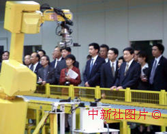正在日本訪問的中國總理朱镕基今天參觀了日本法納克公司。位于日本山梨縣的法納克公司是目前世界上規(guī)模最大的產(chǎn)業(yè)機(jī)器人制造公司。中新社記者 陶光雄 攝