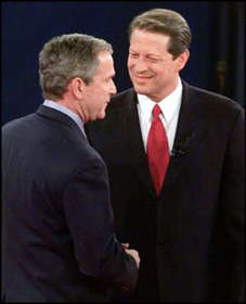 圖文:戈?duì)柤安际驳谌嗠娨曓q論開始 2000年10月18日 10:02 ![]() 戈?duì)柵c小布什禮節(jié)性握手 中新網(wǎng)華盛頓10月18日消息:距離美國總統(tǒng)大選頭偏只剩下3星期。民主和共和兩黨候選人戈?duì)柤皢讨尾际,于北京時(shí)間今早9時(shí)展開第三輪電視辯論。這也是選舉前最后一次辯論,盡力爭取仍未作出決定的選民支持。 電視辯論在華盛頓大學(xué)舉行,歷時(shí)90分鐘。在開始辯論前,主持人宣布為剛在空難中喪生的密蘇里州州長卡納翰默哀。兩人將會(huì)在今天辯論中,集中討論外交問題。(圖文均據(jù)外電) 相關(guān)報(bào)道:戈?duì)柡托〔际步裉爝M(jìn)行最后一場電視辯論 相關(guān)報(bào)道:調(diào)查顯示小布什第二輪電視辯論表現(xiàn)佳 相關(guān)報(bào)道:民調(diào)顯示戈?duì)、布什首次電視辯論未見明顯輸贏 |