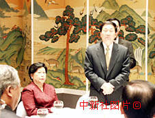 國務(wù)院總理朱镕基22日在濟(jì)州島參加韓中友協(xié)舉行的午餐會(huì)。中新社記者 王曉暉 攝
